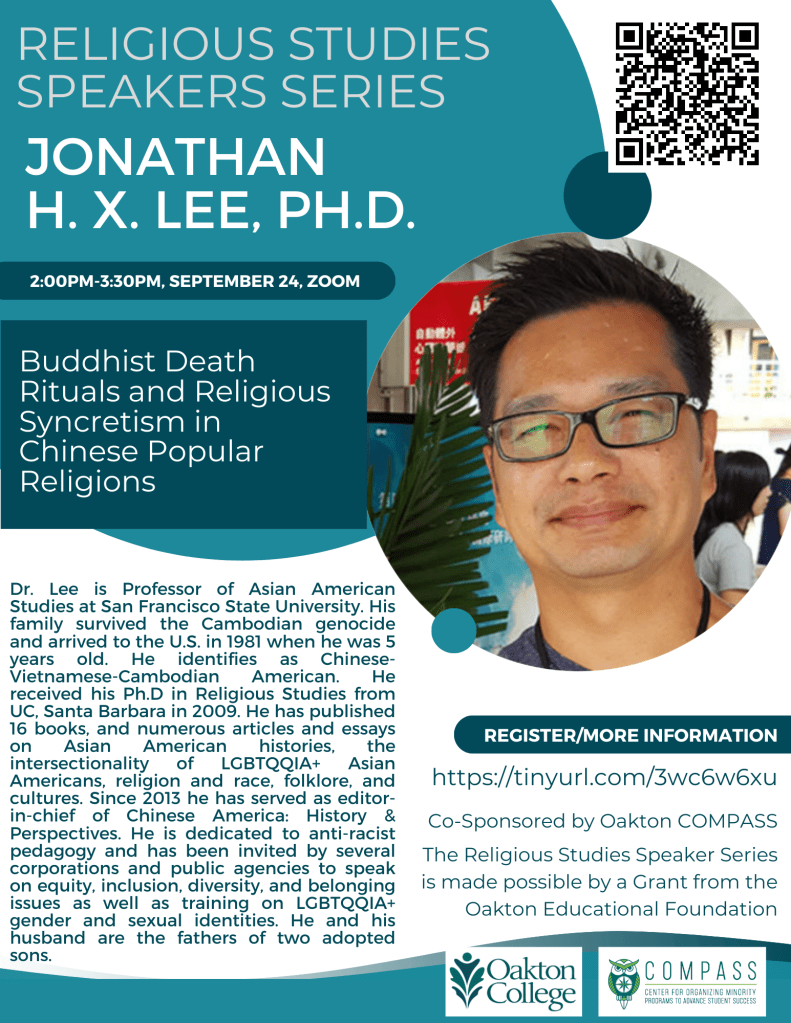 The Religious Studies Speaker Series and Oakton COMPASS Present: Jonathan H. X. Lee, Ph.D.